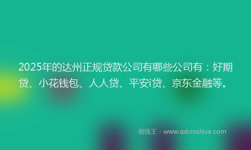 2025年的达州正规贷款公司有哪些公司有:好期贷、小花钱包、人人贷、平安i贷、京东金融等。