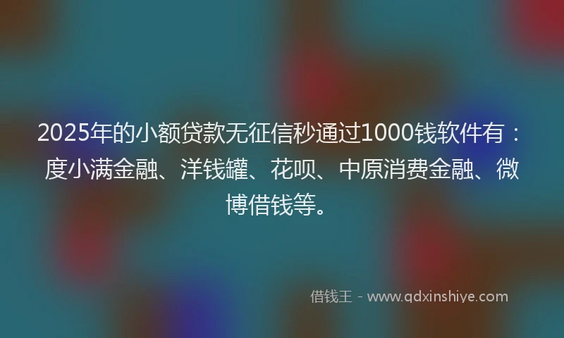 2025年的小额贷款无征信秒通过1000钱软件有:度小满金融、洋钱罐、花呗、中原消费金融、微博借钱等。