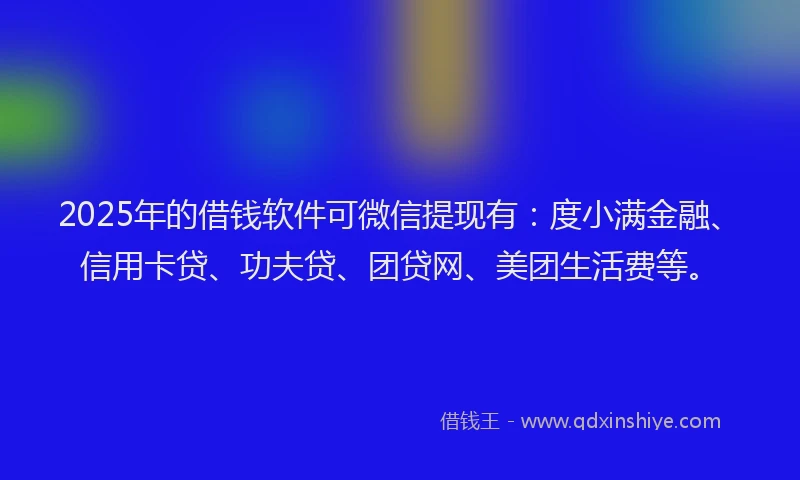2025年的借钱软件可微信提现有:度小满金融、信用卡贷、功夫贷、团贷网、美团生活费等。