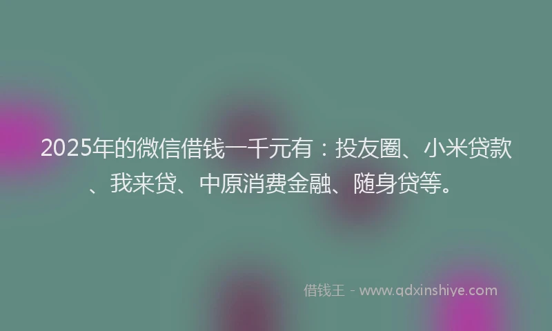 2025年的微信借钱一千元有:投友圈、小米贷款、我来贷、中原消费金融、随身贷等。