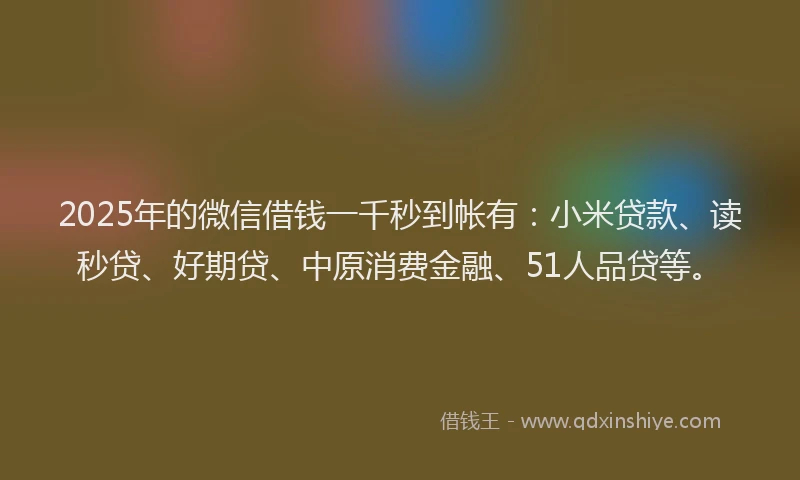 2025年的微信借钱一千秒到帐有:小米贷款、读秒贷、好期贷、中原消费金融、51人品贷等。