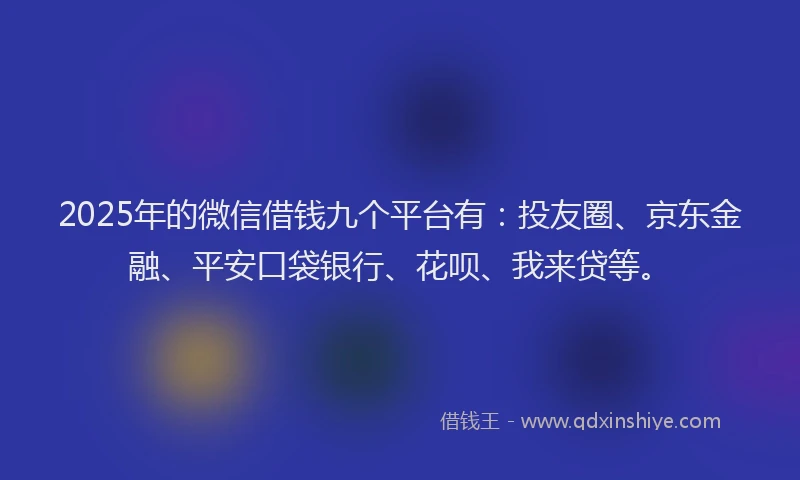 2025年的微信借钱九个平台有:投友圈、京东金融、平安口袋银行、花呗、我来贷等。