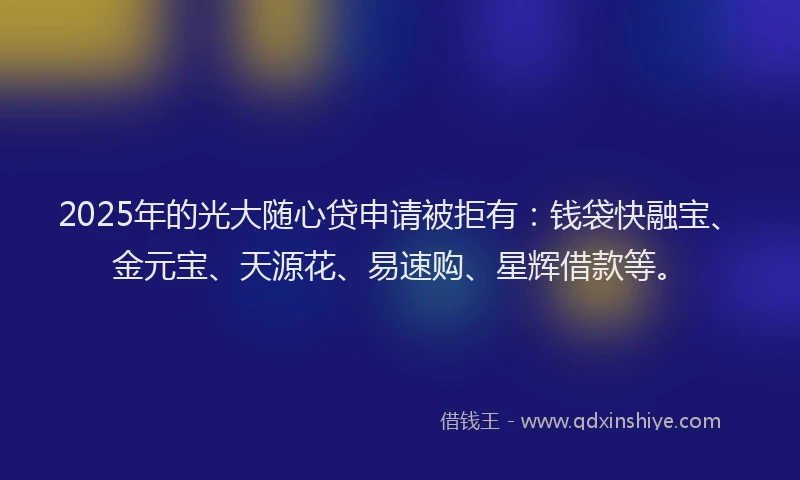 2025年的光大随心贷申请被拒有:钱袋快融宝、金元宝、天源花、易速购、星辉借款等。