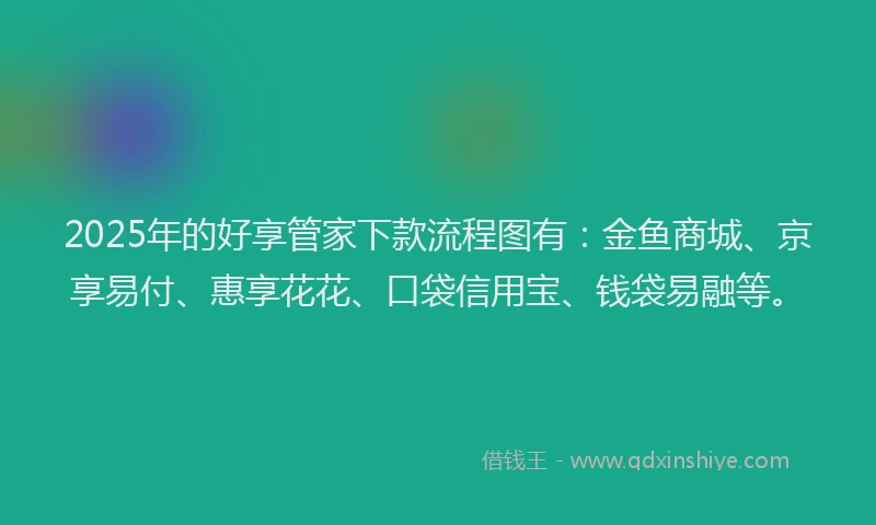 2025年的好享管家下款流程图有:金鱼商城、京享易付、惠享花花、口袋信用宝、钱袋易融等。