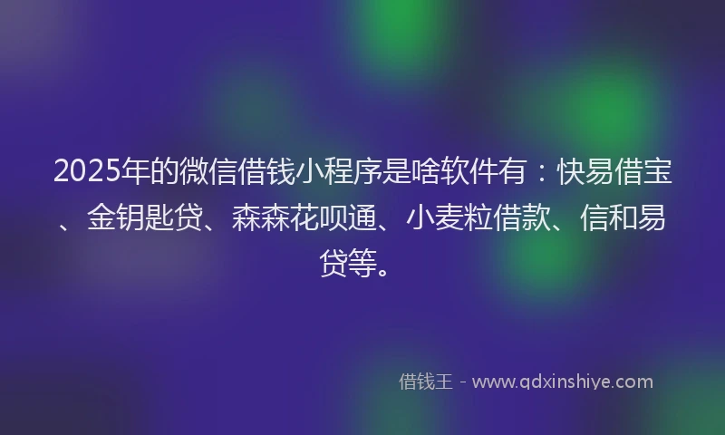 2025年的微信借钱小程序是啥软件有:快易借宝、金钥匙贷、森森花呗通、小麦粒借款、信和易贷等。