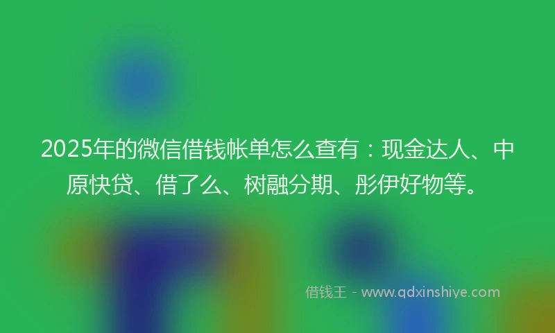 2025年的微信借钱帐单怎么查有:现金达人、中原快贷、借了么、树融分期、彤伊好物等。