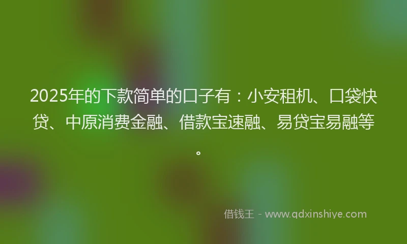 2025年的下款简单的口子有:小安租机、口袋快贷、中原消费金融、借款宝速融、易贷宝易融等。