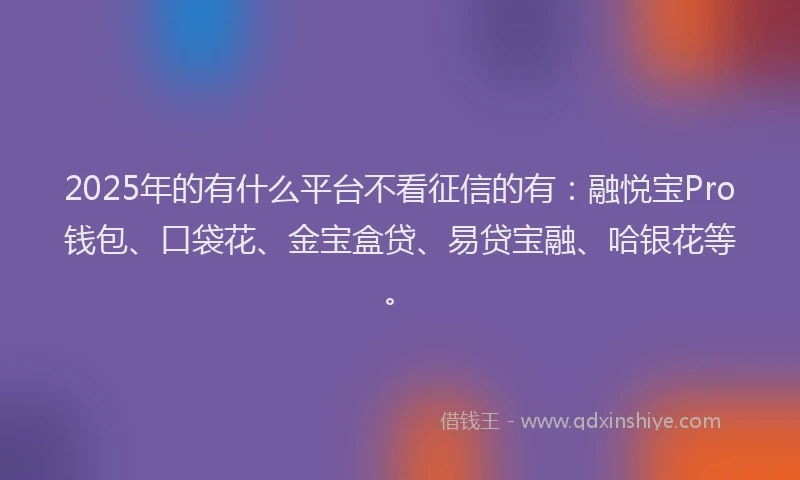 2025年的有什么平台不看征信的有:融悦宝Pro钱包、口袋花、金宝盒贷、易贷宝融、哈银花等。