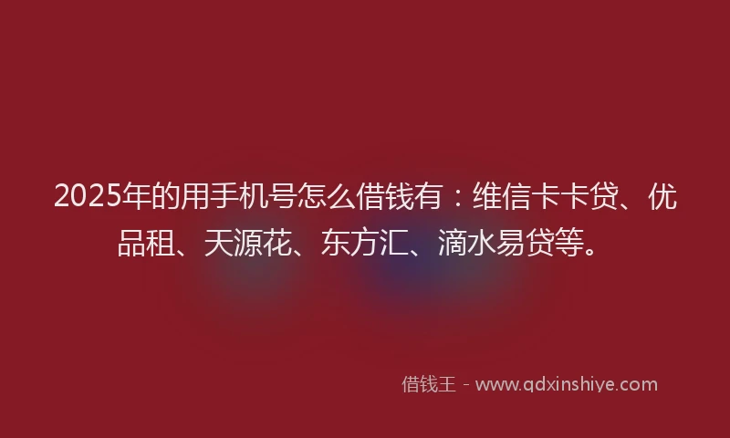 2025年的用手机号怎么借钱有:维信卡卡贷、优品租、天源花、东方汇、滴水易贷等。