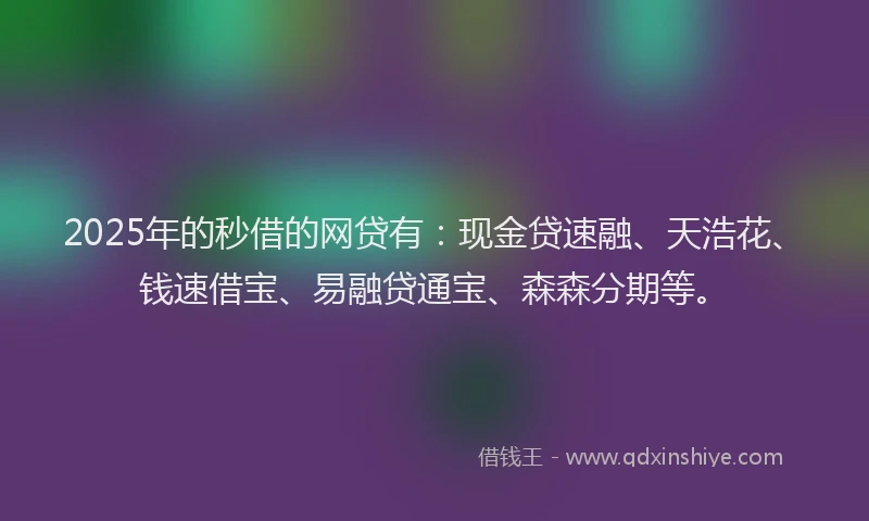 2025年的秒借的网贷有:现金贷速融、天浩花、钱速借宝、易融贷通宝、森森分期等。