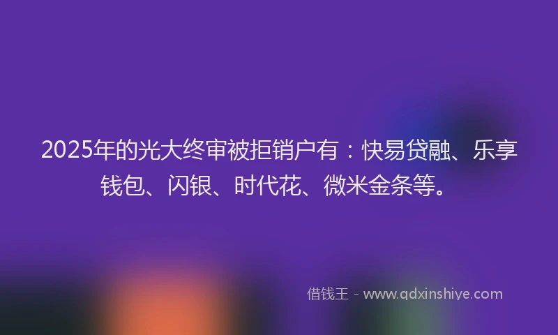 2025年的光大终审被拒销户有:快易贷融、乐享钱包、闪银、时代花、微米金条等。