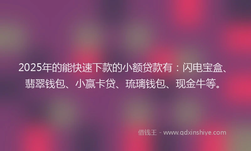 2025年的能快速下款的小额贷款有:闪电宝盒、翡翠钱包、小赢卡贷、琉璃钱包、现金牛等。