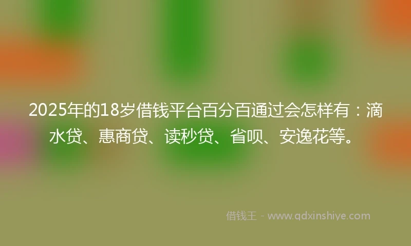 2025年的18岁借钱平台百分百通过会怎样有:滴水贷、惠商贷、读秒贷、省呗、安逸花等。