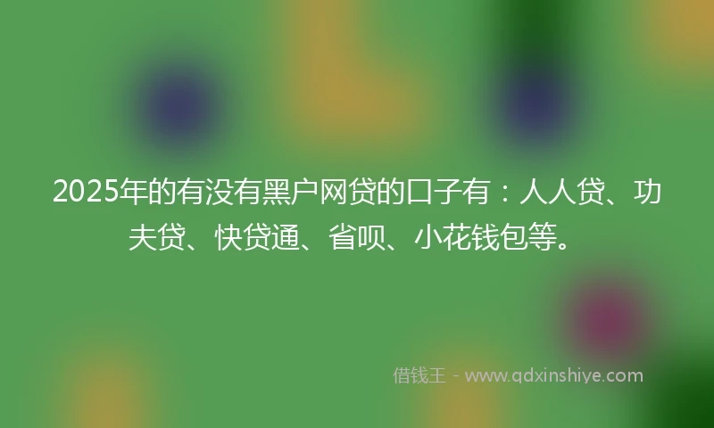 2025年的有没有黑户网贷的口子有:人人贷、功夫贷、快贷通、省呗、小花钱包等。