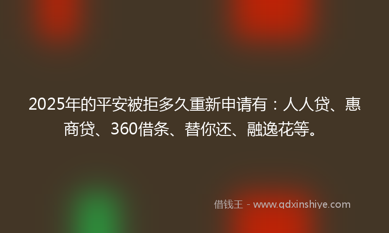 2025年的平安被拒多久重新申请有:人人贷、惠商贷、360借条、替你还、融逸花等。