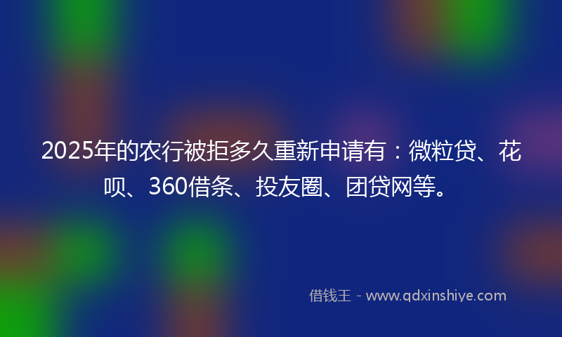 2025年的农行被拒多久重新申请有:微粒贷、花呗、360借条、投友圈、团贷网等。