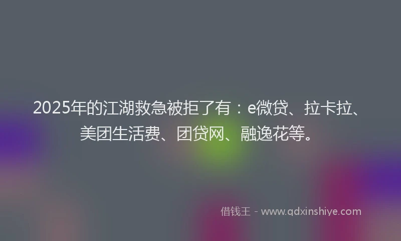 2025年的江湖救急被拒了有:e微贷、拉卡拉、美团生活费、团贷网、融逸花等。