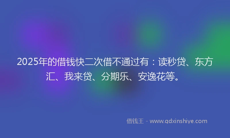 2025年的借钱快二次借不通过有:读秒贷、东方汇、我来贷、分期乐、安逸花等。