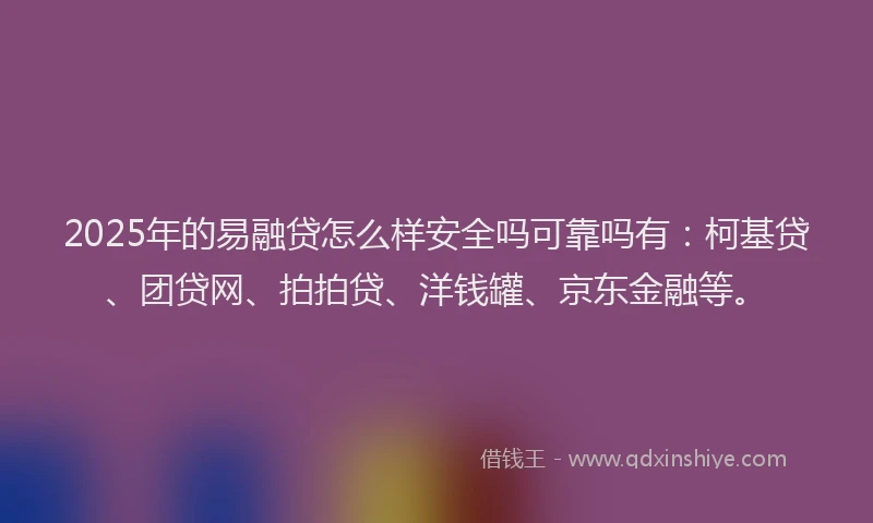 2025年的易融贷怎么样安全吗可靠吗有:柯基贷、团贷网、拍拍贷、洋钱罐、京东金融等。