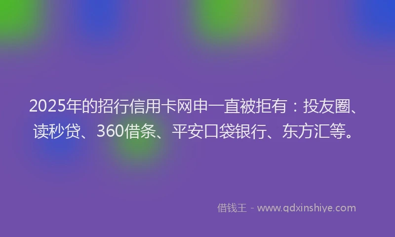 2025年的招行信用卡网申一直被拒有:投友圈、读秒贷、360借条、平安口袋银行、东方汇等。
