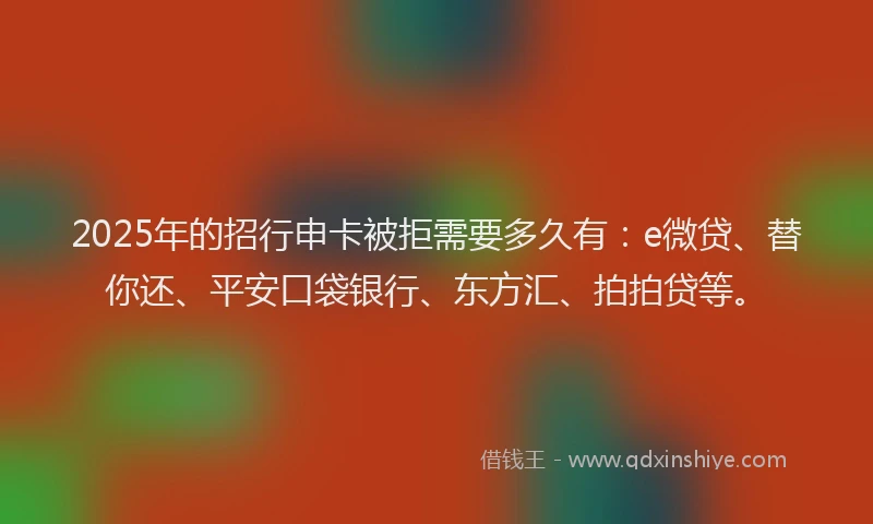 2025年的招行申卡被拒需要多久有:e微贷、替你还、平安口袋银行、东方汇、拍拍贷等。