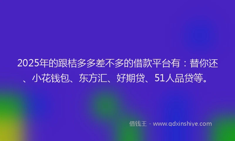 2025年的跟桔多多差不多的借款平台有:替你还、小花钱包、东方汇、好期贷、51人品贷等。
