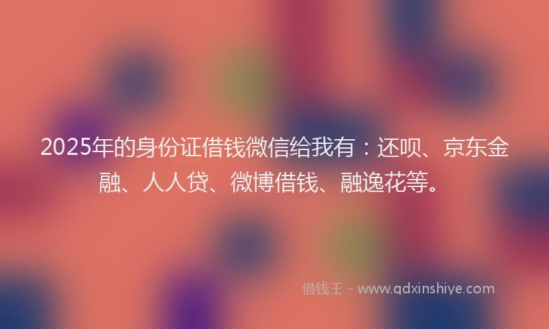 2025年的身份证借钱微信给我有:还呗、京东金融、人人贷、微博借钱、融逸花等。