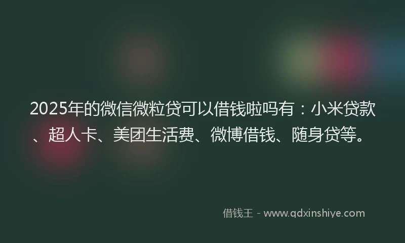 2025年的微信微粒贷可以借钱啦吗有:小米贷款、超人卡、美团生活费、微博借钱、随身贷等。