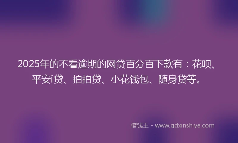 2025年的不看逾期的网贷百分百下款有:花呗、平安i贷、拍拍贷、小花钱包、随身贷等。