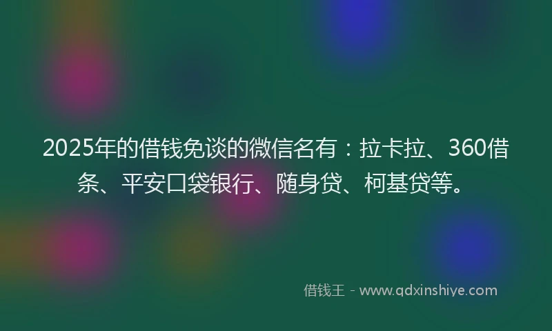 2025年的借钱免谈的微信名有:拉卡拉、360借条、平安口袋银行、随身贷、柯基贷等。