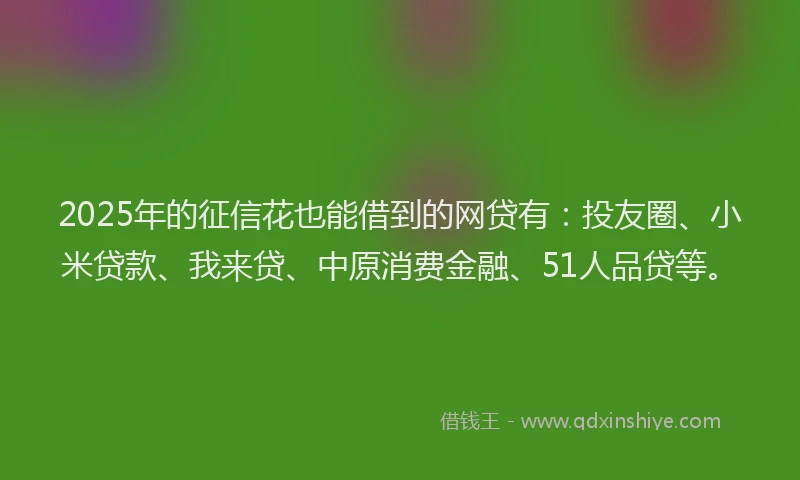 2025年的征信花也能借到的网贷有:投友圈、小米贷款、我来贷、中原消费金融、51人品贷等。