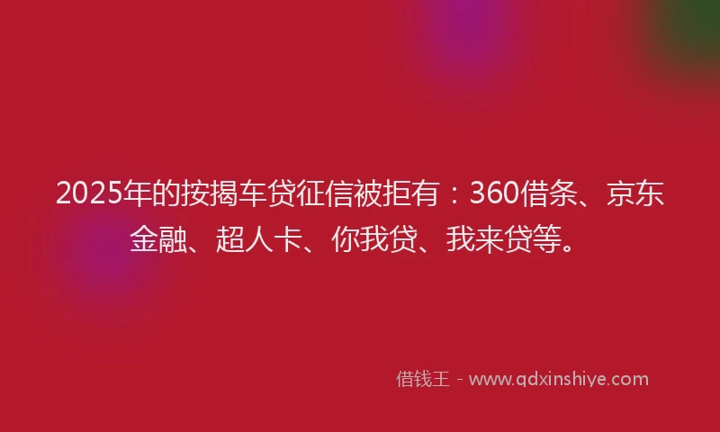 2025年的按揭车贷征信被拒有:360借条、京东金融、超人卡、你我贷、我来贷等。