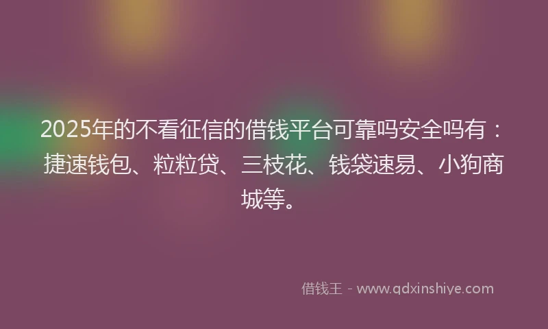 2025年的不看征信的借钱平台可靠吗安全吗有:捷速钱包、粒粒贷、三枝花、钱袋速易、小狗商城等。