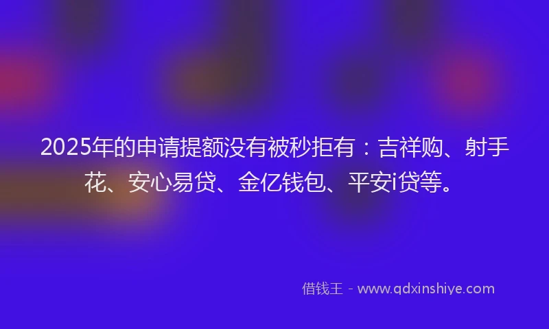 2025年的申请提额没有被秒拒有:吉祥购、射手花、安心易贷、金亿钱包、平安i贷等。