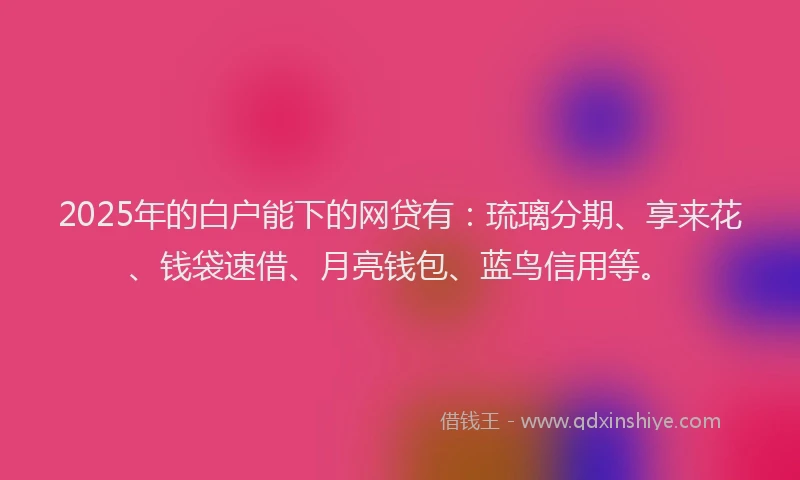 2025年的白户能下的网贷有:琉璃分期、享来花、钱袋速借、月亮钱包、蓝鸟信用等。