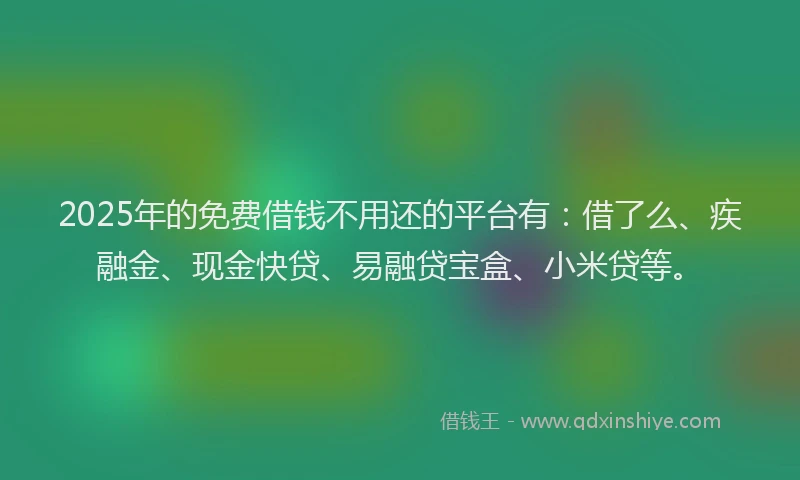 2025年的免费借钱不用还的平台有:借了么、疾融金、现金快贷、易融贷宝盒、小米贷等。