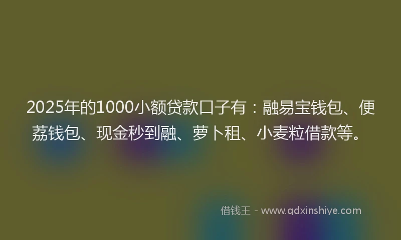 2025年的1000小额贷款口子有:融易宝钱包、便荔钱包、现金秒到融、萝卜租、小麦粒借款等。
