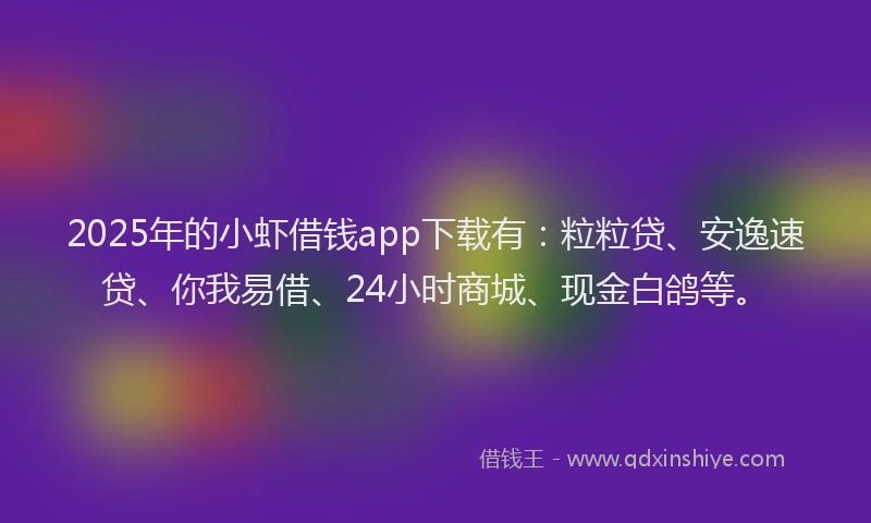 2025年的小虾借钱app下载有:粒粒贷、安逸速贷、你我易借、24小时商城、现金白鸽等。