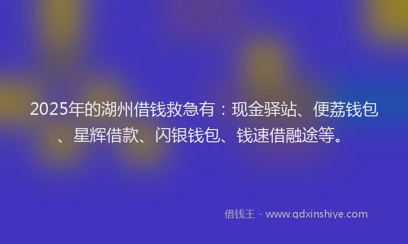 2025年的湖州借钱救急有:现金驿站、便荔钱包、星辉借款、闪银钱包、钱速借融途等。