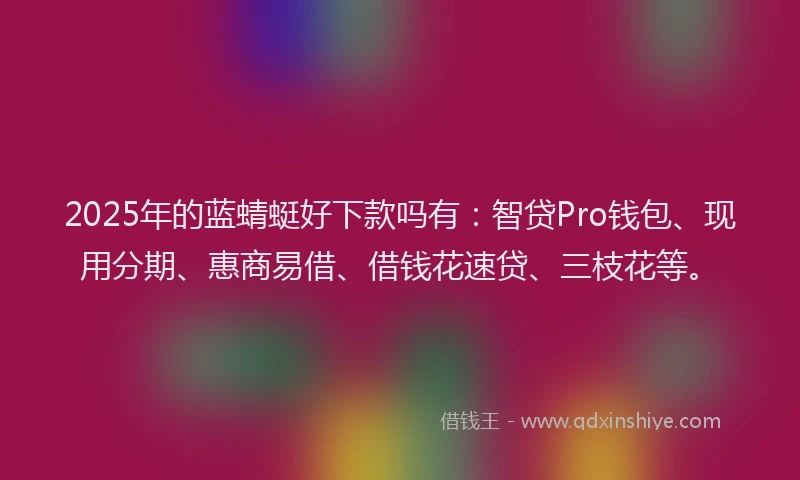 2025年的蓝蜻蜓好下款吗有:智贷Pro钱包、现用分期、惠商易借、借钱花速贷、三枝花等。