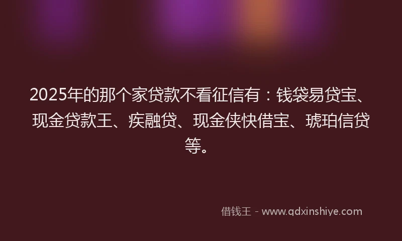 2025年的那个家贷款不看征信有:钱袋易贷宝、现金贷款王、疾融贷、现金侠快借宝、琥珀信贷等。
