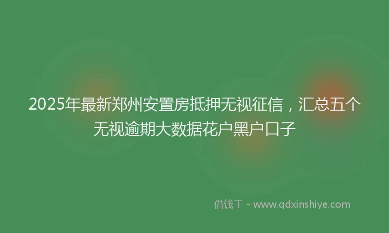 2025年最新郑州安置房抵押无视征信,汇总五个无视逾期大数据花户黑户口子