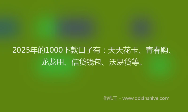 2025年的1000下款口子有:天天花卡、青春购、龙龙用、信贷钱包、沃易贷等。