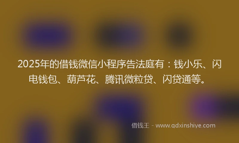 2025年的借钱微信小程序告法庭有:钱小乐、闪电钱包、葫芦花、腾讯微粒贷、闪贷通等。