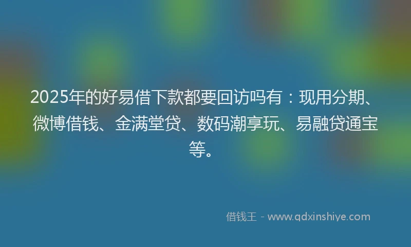 2025年的好易借下款都要回访吗有:现用分期、微博借钱、金满堂贷、数码潮享玩、易融贷通宝等。