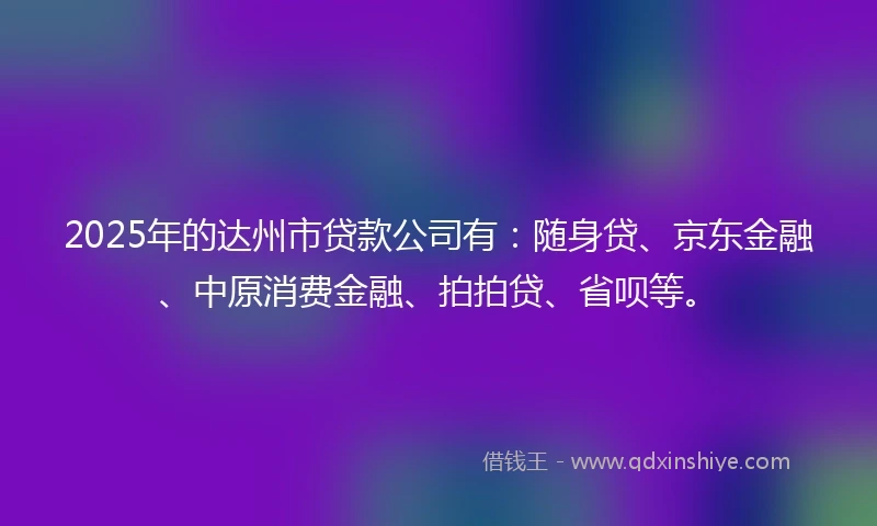 2025年的达州市贷款公司有:随身贷、京东金融、中原消费金融、拍拍贷、省呗等。