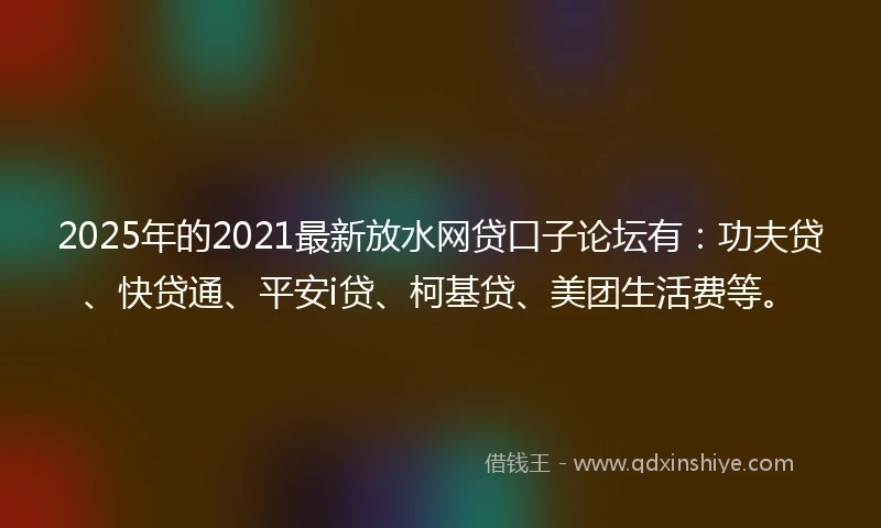2025年的2021最新放水网贷口子论坛有:功夫贷、快贷通、平安i贷、柯基贷、美团生活费等。