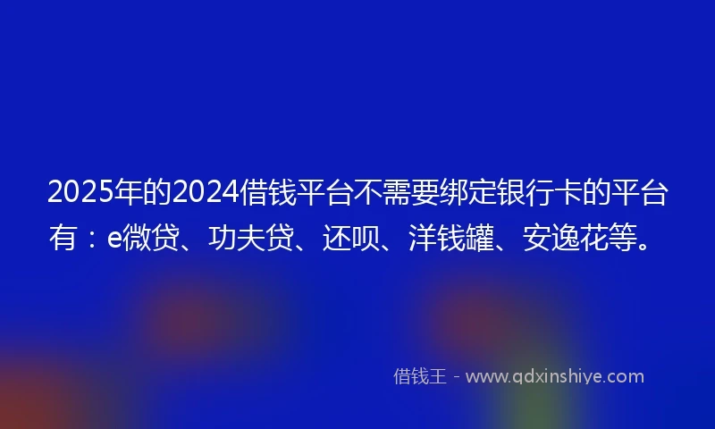 2025年的2024借钱平台不需要绑定银行卡的平台有:e微贷、功夫贷、还呗、洋钱罐、安逸花等。