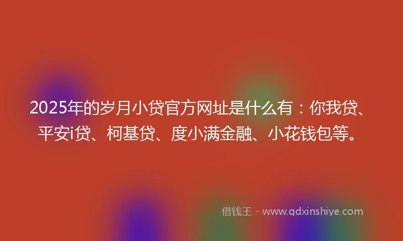 2025年的岁月小贷官方网址是什么有:你我贷、平安i贷、柯基贷、度小满金融、小花钱包等。