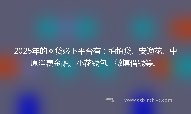 2025年的网贷必下平台有:拍拍贷、安逸花、中原消费金融、小花钱包、微博借钱等。